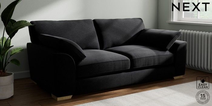 7.3.1 Buy Stamford Grand Relaxed Sit 3 Seater Sofa Fine Chenille Easy Clean Black Large Square Angle - Light from the Next UK online shop