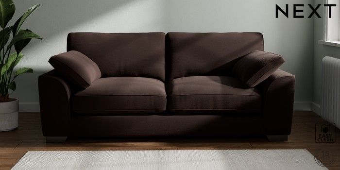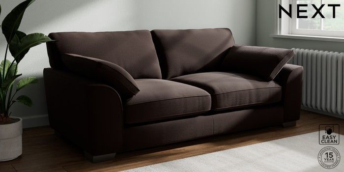 7.3.1 Buy Stamford Grand Relaxed Sit 3 Seater Sofa Fine Chenille Easy Clean Chocolate Brown Large Square Angle - Gunmetal from the Next UK online shop Click here to use our accessible website