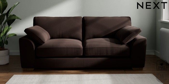 7.3.1 Buy Stamford Grand Relaxed Sit 3 Seater Sofa Fine Chenille Easy Clean Chocolate Brown Large Square Angle - Mid from the Next UK online shop Click here to use our accessible website
