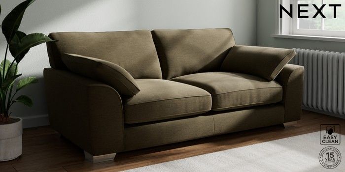 7.3.1 Buy Stamford Grand Relaxed Sit 3 Seater Sofa Fine Chenille Easy Clean Dark Moss Green Large Square Angle - Chrome Metal from the Next UK online shop Click here to use our accessible website