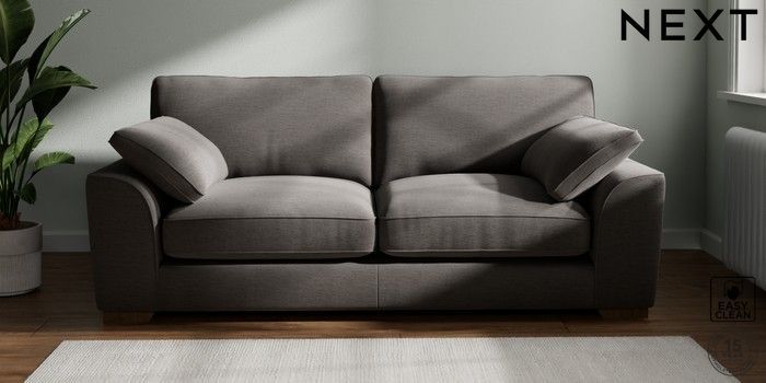 7.3.1 Buy Stamford Grand Relaxed Sit 3 Seater Sofa Fine Chenille Easy Clean Dark Smoke Grey Large Square Angle - Mid from the Next UK online shop Click here to use our accessible website