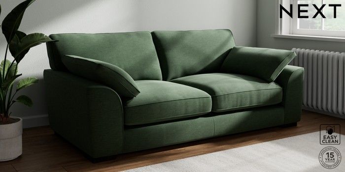 7.3.1 Buy Stamford Grand Relaxed Sit 3 Seater Sofa Fine Chenille Easy Clean Mid Khaki Green Large Square Angle - Dark from the Next UK online shop Click here to use our accessible website