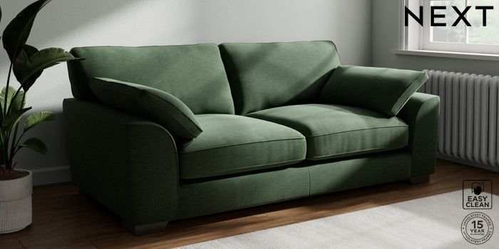 7.3.1 Buy Stamford Grand Relaxed Sit 3 Seater Sofa Fine Chenille Easy Clean Mid Khaki Green Large Square Angle - Gunmetal from the Next UK online shop Click here to use our accessible website