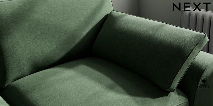 7.3.1 Buy Stamford Grand Relaxed Sit 3 Seater Sofa Fine Chenille Easy Clean Mid Khaki Green Large Square Angle - Mid from the Next UK online shop Click here to use our accessible website