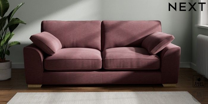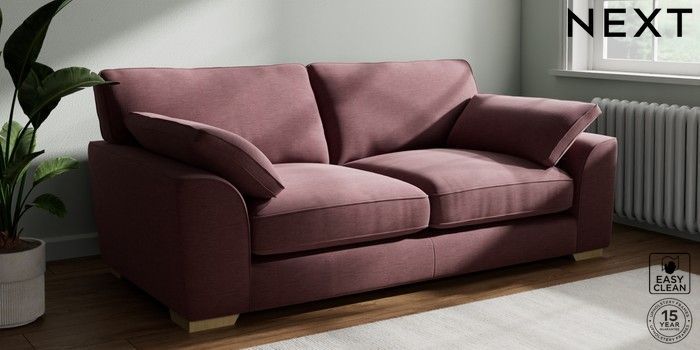 7.3.1 Buy Stamford Grand Relaxed Sit 3 Seater Sofa Fine Chenille Easy Clean Mid Mulberry Purple Large Square Angle - Light from the Next UK online shop Click here to use our accessible website