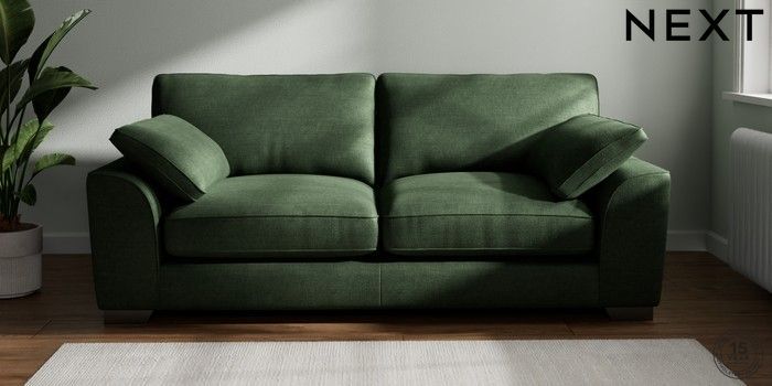 7.3.1 Buy Stamford Grand Relaxed Sit 3 Seater Sofa Luxe Chenille Dark Green Large Square Angle - Gunmetal from the Next UK online shop Click here to use our accessible website