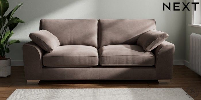 7.3.1 Buy Stamford Grand Relaxed Sit 3 Seater Sofa Luxe Chenille Mink Brown Large Square Angle - Chrome Metal from the Next UK online shop Click here to use our accessible website