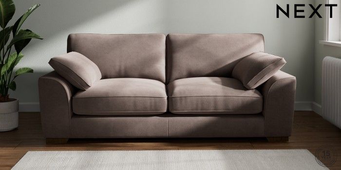 7.2.10 Buy Stamford Grand Relaxed Sit 3 Seater Sofa Luxe Chenille Mink Brown Large Square Angle - Mid from the Next UK online shop Click here to use our accessible website