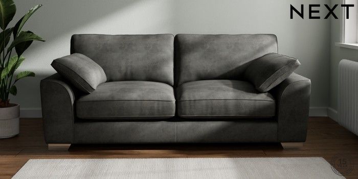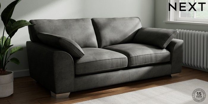 7.3.1 Buy Stamford Grand Relaxed Sit 3 Seater Sofa Monza Faux Leather Easy Clean Dark Grey Large Square Angle - Chrome Metal from the Next UK online shop Click here to use our accessible website