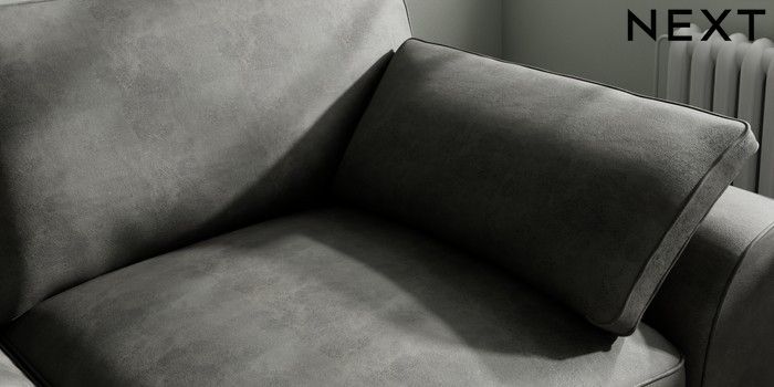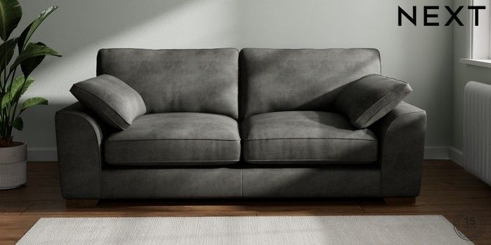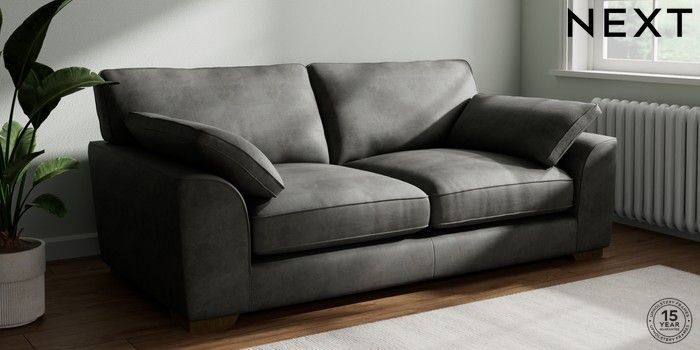 7.3.1 Buy Stamford Grand Relaxed Sit 3 Seater Sofa Monza Faux Leather Easy Clean Dark Grey Large Square Angle - Mid from the Next UK online shop Click here to use our accessible website