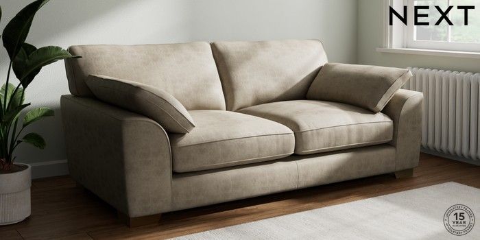 7.3.1 Buy Stamford Grand Relaxed Sit 3 Seater Sofa Monza Faux Leather Easy Clean Mink Brown Large Square Angle - Brushed Brass from the Next UK online shop Click here to use our accessible website