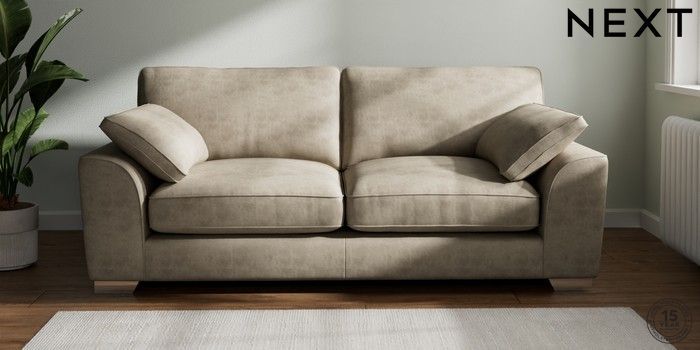 7.3.1 Buy Stamford Grand Relaxed Sit 3 Seater Sofa Monza Faux Leather Easy Clean Mink Brown Large Square Angle - Chrome Metal from the Next UK online shop