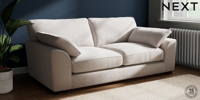 7.3.1 Buy Stamford Grand Relaxed Sit 3 Seater Sofa Multi Weave Oyster Large Square Angle - Dark from the Next UK online shop