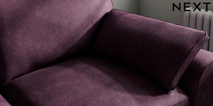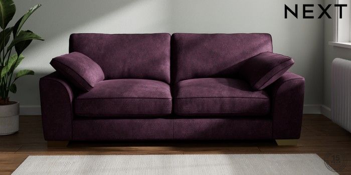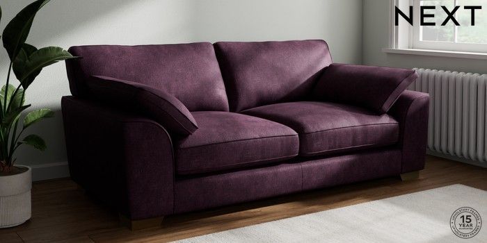 7.3.1 Buy Stamford Grand Relaxed Sit 3 Seater Sofa Plush Chenille Dark Plum Purple Large Square Angle - Brushed Brass from the Next UK online shop Click here to use our accessible website