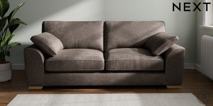 7.3.1 Buy Stamford Grand Relaxed Sit 3 Seater Sofa Plush Chenille Mink Brown Large Square Angle - Light from the Next UK online shop Click here to use our accessible website