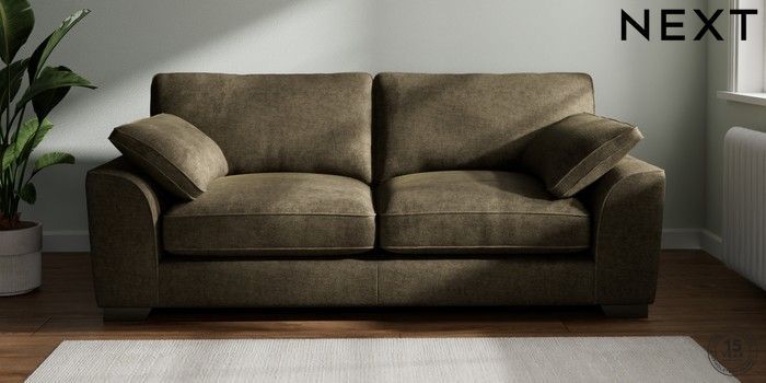 7.3.1 Buy Stamford Grand Relaxed Sit 3 Seater Sofa Plush Chenille Moss Green Large Square Angle - Gunmetal from the Next UK online shop Click here to use our accessible website