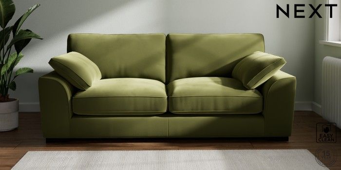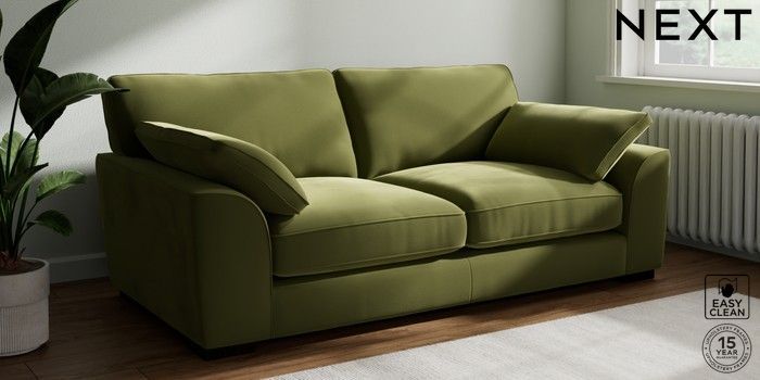 7.3.1 Buy Stamford Grand Relaxed Sit 3 Seater Sofa Plush Velvet Easy Clean Mid Olive Green Large Square Angle - Dark from the Next UK online shop Click here to use our accessible website