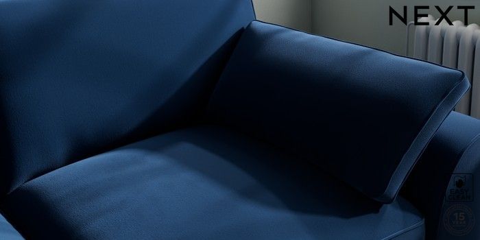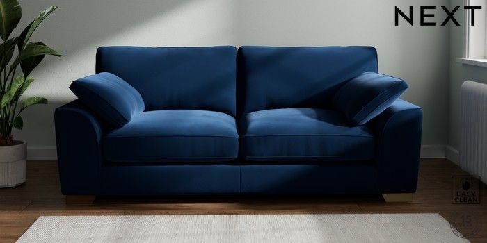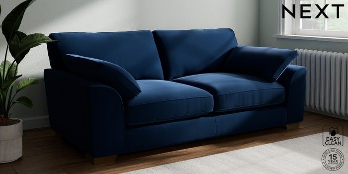7.3.1 Buy Stamford Grand Relaxed Sit 3 Seater Sofa Plush Velvet Easy Clean Navy Blue Large Square Angle - Brushed Brass from the Next UK online shop Click here to use our accessible website