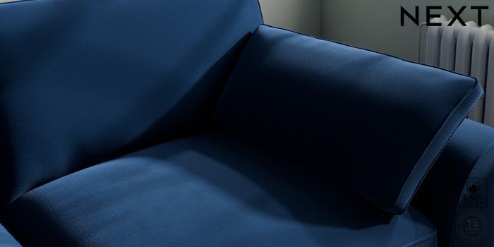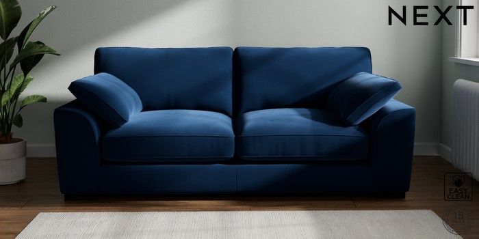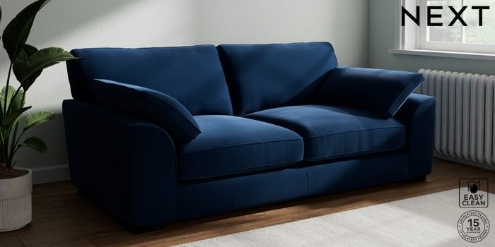7.3.1 Buy Stamford Grand Relaxed Sit 3 Seater Sofa Plush Velvet Easy Clean Navy Blue Large Square Angle - Dark from the Next UK online shop Click here to use our accessible website