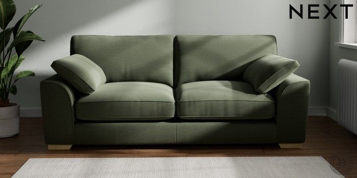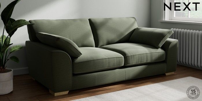 7.3.1 Buy Stamford Grand Relaxed Sit 3 Seater Sofa Relaxed Linen Look Dark Green Large Square Angle - Light from the Next UK online shop Click here to use our accessible website