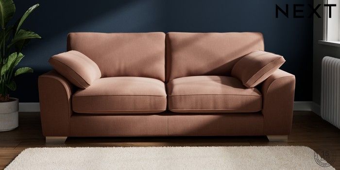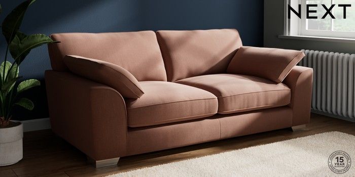 7.3.1 Buy Stamford Grand Relaxed Sit 3 Seater Sofa Relaxed Linen Look Light Rust Brown Large Square Angle - Chrome Metal from the Next UK online shop Click here to use our accessible website