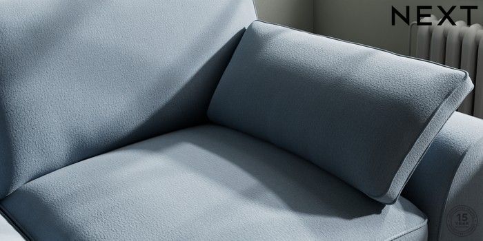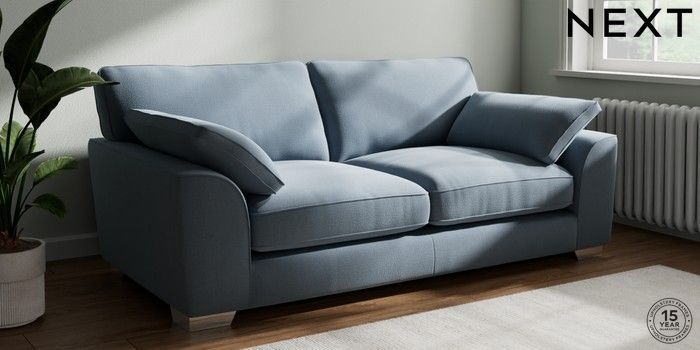 7.3.1 Buy Stamford Grand Relaxed Sit 3 Seater Sofa Relaxed Linen Look Mid Blue Large Square Angle - Chrome Metal from the Next UK online shop Click here to use our accessible website