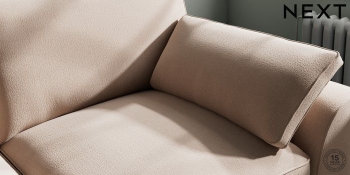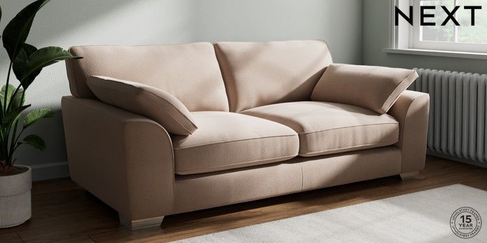 7.3.1 Buy Stamford Grand Relaxed Sit 3 Seater Sofa Relaxed Linen Look Mid Natural Large Square Angle - Chrome Metal from the Next UK online shop Click here to use our accessible website