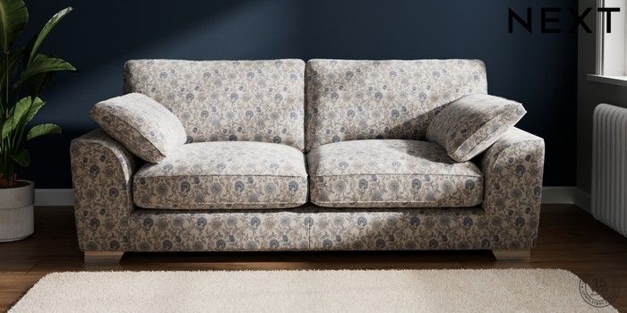 7.2.10 Buy Stamford Grand Relaxed Sit 3 Seater Sofa Relaxed Linen Look Print Woodblock Floral Blue Large Square Angle - Chrome Metal from the Next UK online shop Click here to use our accessible website