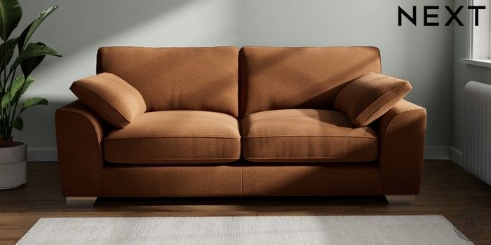 7.3.1 Buy Stamford Grand Relaxed Sit 3 Seater Sofa Ripple Chenille Mid Rust Brown Large Square Angle - Chrome Metal from the Next UK online shop Click here to use our accessible website