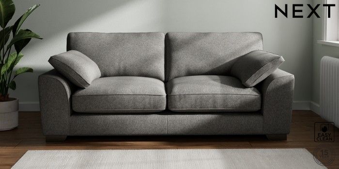 7.3.1 Buy Stamford Grand Relaxed Sit 3 Seater Sofa Tweedy Blend Easy Clean Dark Grey Large Square Angle - Gunmetal from the Next UK online shop Click here to use our accessible website