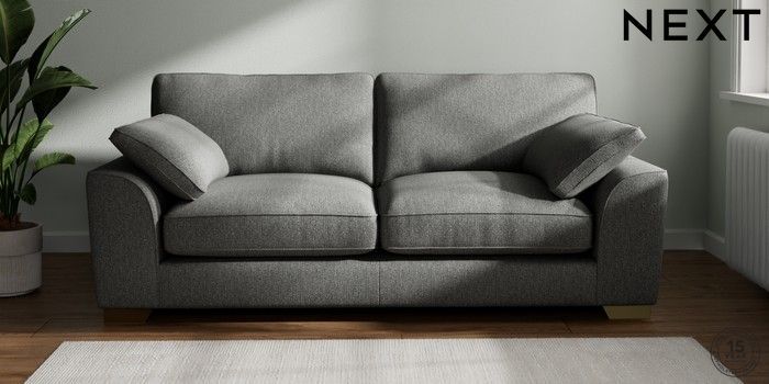 7.3.1 Buy Stamford Grand Relaxed Sit 3 Seater Sofa Tweedy Chenille Dark Grey Large Square Angle - Brushed Brass from the Next UK online shop Click here to use our accessible website