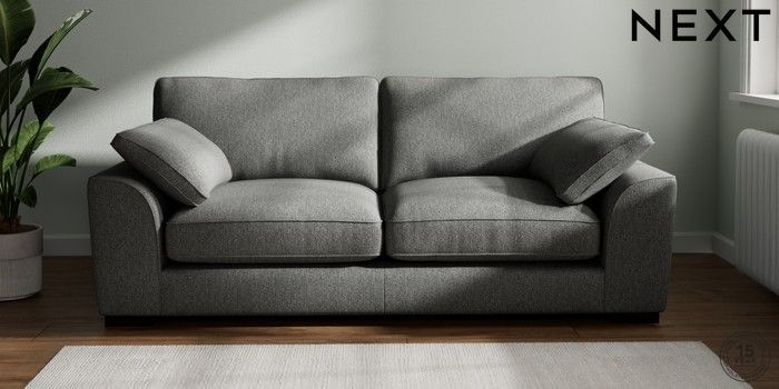 7.3.1 Buy Stamford Grand Relaxed Sit 3 Seater Sofa Tweedy Chenille Dark Grey Large Square Angle - Dark from the Next UK online shop Click here to use our accessible website