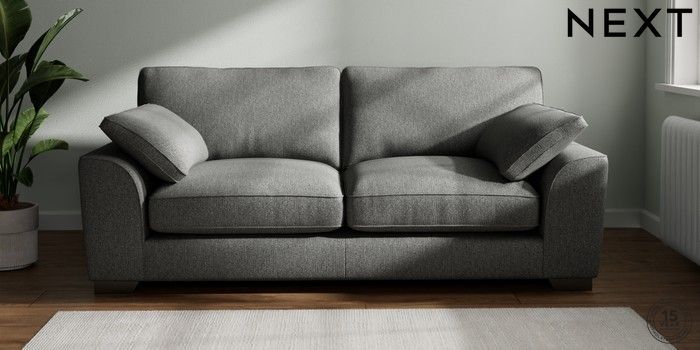 7.3.1 Buy Stamford Grand Relaxed Sit 3 Seater Sofa Tweedy Chenille Dark Grey Large Square Angle - Gunmetal from the Next UK online shop Click here to use our accessible website