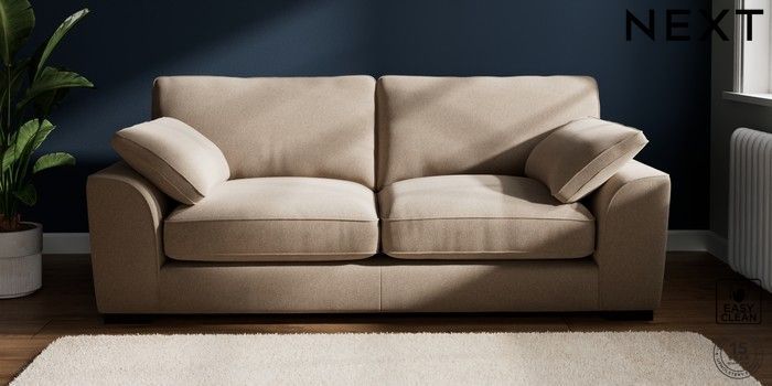 7.3.1 Buy Stamford Grand Relaxed Sit 3 Seater Sofa Tweedy Blend Easy Clean Light Dove Natural Large Square Angle - Dark from the Next UK online shop Click here to use our accessible website