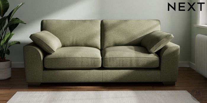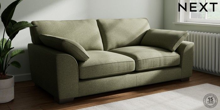 7.3.1 Buy Stamford Grand Relaxed Sit 3 Seater Sofa Tweedy Chenille Mid Moss Green Large Square Angle - Gunmetal from the Next UK online shop Click here to use our accessible website