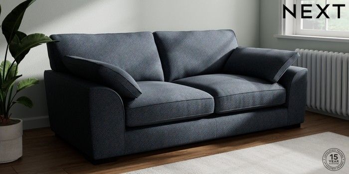 7.3.1 Buy Stamford Grand Relaxed Sit 3 Seater Sofa Tweedy Chenille Navy Blue Large Square Angle - Dark from the Next UK online shop Click here to use our accessible website
