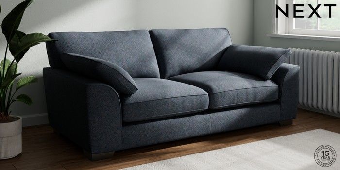 7.3.1 Buy Stamford Grand Relaxed Sit 3 Seater Sofa Tweedy Chenille Navy Blue Large Square Angle - Gunmetal from the Next UK online shop Click here to use our accessible website