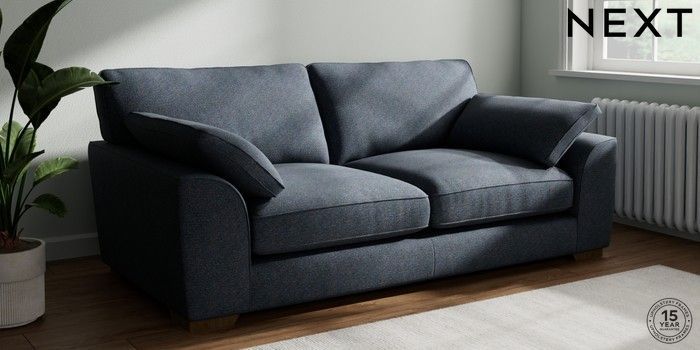 7.3.1 Buy Stamford Grand Relaxed Sit 3 Seater Sofa Tweedy Chenille Navy Blue Large Square Angle - Mid from the Next UK online shop Click here to use our accessible website