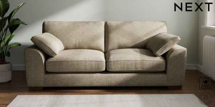 7.3.1 Buy Stamford Grand Relaxed Sit 3 Seater Sofa Woven Chenille Easy Clean Mid Natural Large Square Angle - Mid from the Next UK online shop Click here to use our accessible website