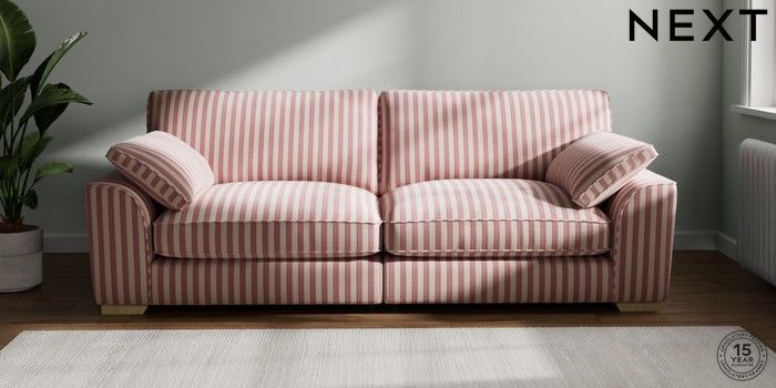 7.2.10 Buy Stamford Grand Relaxed Sit 4 Seater Sofa Bold Chenille Stripe Dark Pink Large Square Angle - Light from the Next UK online shop Click here to use our accessible website
