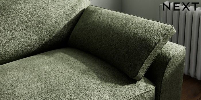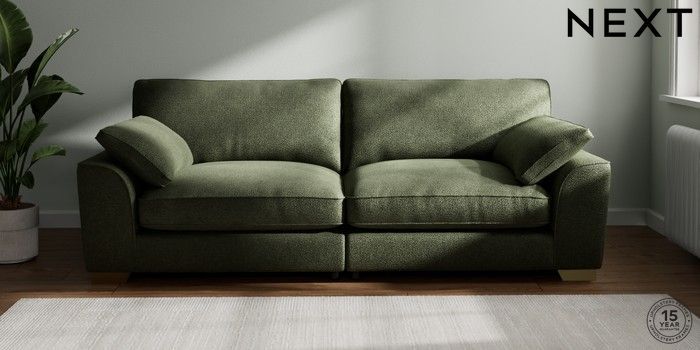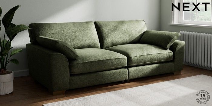 7.3.1 Buy Stamford Grand Relaxed Sit 4 Seater Sofa Boucle Chenille Dark Moss Green Large Square Angle - Brushed Brass from the Next UK online shop Click here to use our accessible website