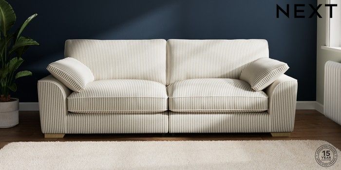 7.2.10 Buy Stamford Grand Relaxed Sit 4 Seater Sofa Chenille Stripe Moss Green Large Square Angle - Light from the Next UK online shop Click here to use our accessible website