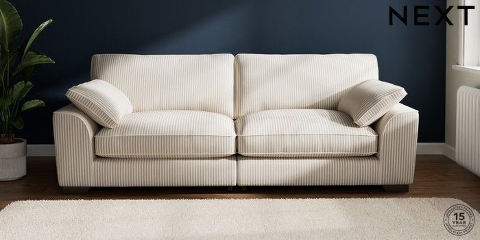 7.2.10 Buy Stamford Grand Relaxed Sit 4 Seater Sofa Chenille Stripe Natural Large Square Angle - Gunmetal from the Next UK online shop Click here to use our accessible website