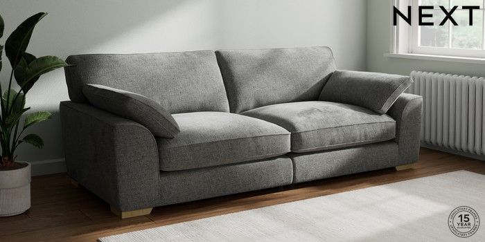 7.3.1 Buy Stamford Grand Relaxed Sit 4 Seater Sofa Chunky Chenille Dark Grey Large Square Angle - Light from the Next UK online shop