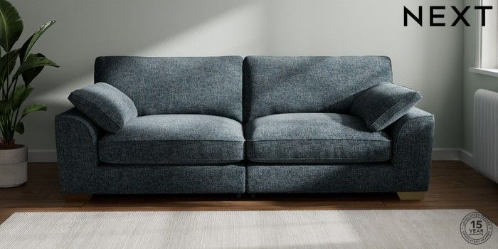 7.3.1 Buy Stamford Grand Relaxed Sit 4 Seater Sofa Chunky Chenille Dark Navy Blue Large Square Angle - Brushed Brass from the Next UK online shop Click here to use our accessible website
