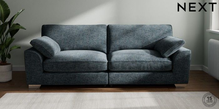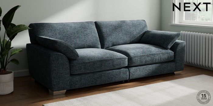 7.3.1 Buy Stamford Grand Relaxed Sit 4 Seater Sofa Chunky Chenille Dark Navy Blue Large Square Angle - Chrome Metal from the Next UK online shop Click here to use our accessible website