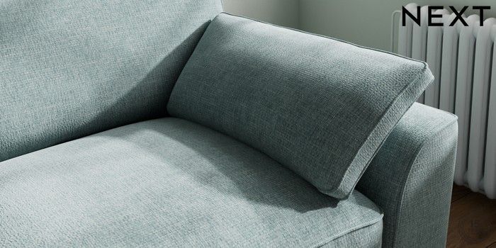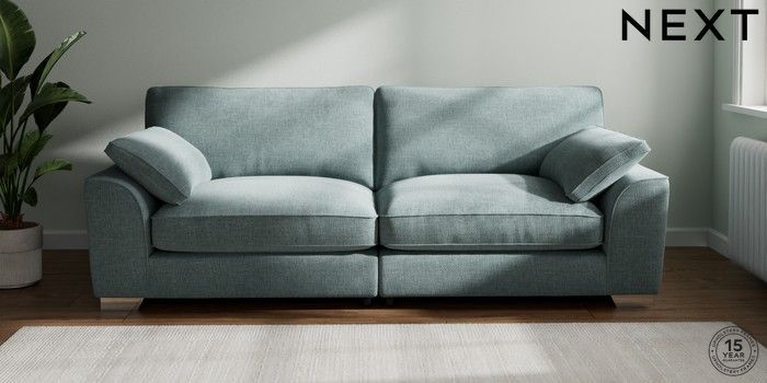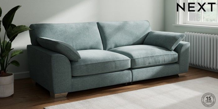 7.3.1 Buy Stamford Grand Relaxed Sit 4 Seater Sofa Chunky Chenille Light Teal Green Large Square Angle - Chrome Metal from the Next UK online shop Click here to use our accessible website