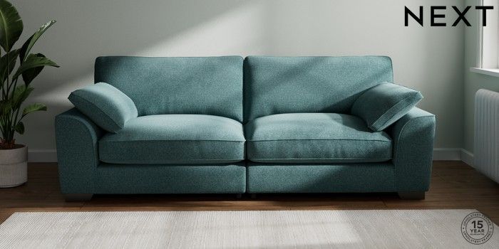 7.3.1 Buy Stamford Grand Relaxed Sit 4 Seater Sofa Chunky Chenille Mid Teal Green Large Square Angle - Gunmetal from the Next UK online shop Click here to use our accessible website