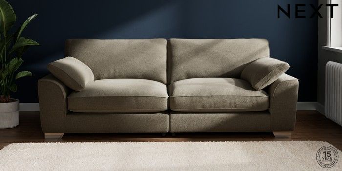 7.3.1 Buy Stamford Grand Relaxed Sit 4 Seater Sofa Chunky Marl Light Olive Green Large Square Angle - Chrome Metal from the Next UK online shop Click here to use our accessible website