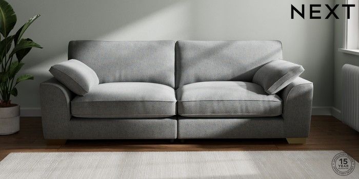 7.2.10 Buy Stamford Grand Relaxed Sit 4 Seater Sofa Chunky Marl Mid Grey Large Square Angle - Brushed Brass from the Next UK online shop Click here to use our accessible website